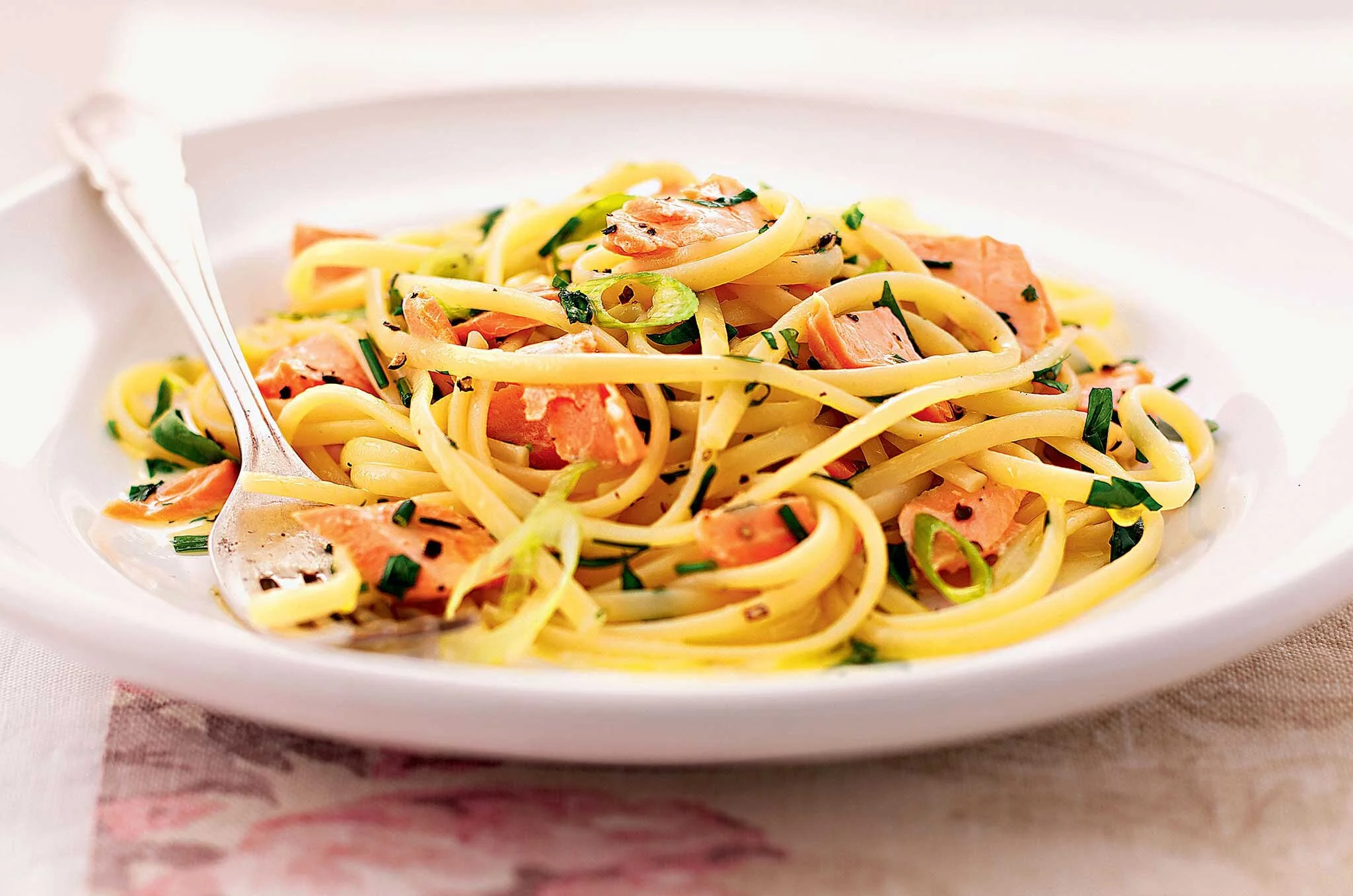 Add lemon juice, dried oregano and salt to taste. Once pasta is cooked, drain immediately and stir through sauce until well coated. Add flaked trout and gently toss through pasta and sauce. Serve scattered with some freshly chopped spring onion and parsley.